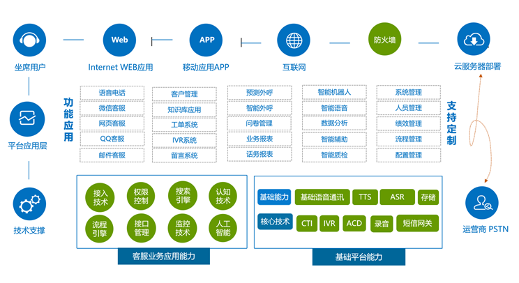 智迅云客服能够为企业在客户服务和产品营销业务上提供数字化赋能,主要功能包括: