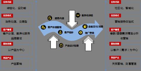 在运营模式上:促进从“账务处理、交易型”向“营销服务型、体验式”持续转变;