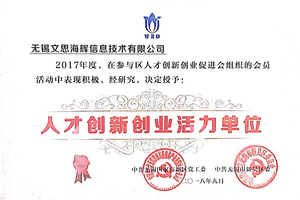 无锡文思海辉作为江苏省规划布局内重点软件企业(规模型)和无锡市服务业龙头骨干企业之一,多年来持续位列无锡市软件十强企业排名第一。2013-2014连续两年当选智联中国年度(无锡地区)最佳雇主十强;2015年被认定为国家高新技术企业;2016年入选江苏生产性服务业百企升级引领工程首批领军企业,成为当年度无锡市唯一一家入选企业;2017年成功当选“苏南国家自主创新示范区瞪羚企业”、无锡市百强民营企业;2018年9月,获评“江苏省信息技术服务企业十强”称号。