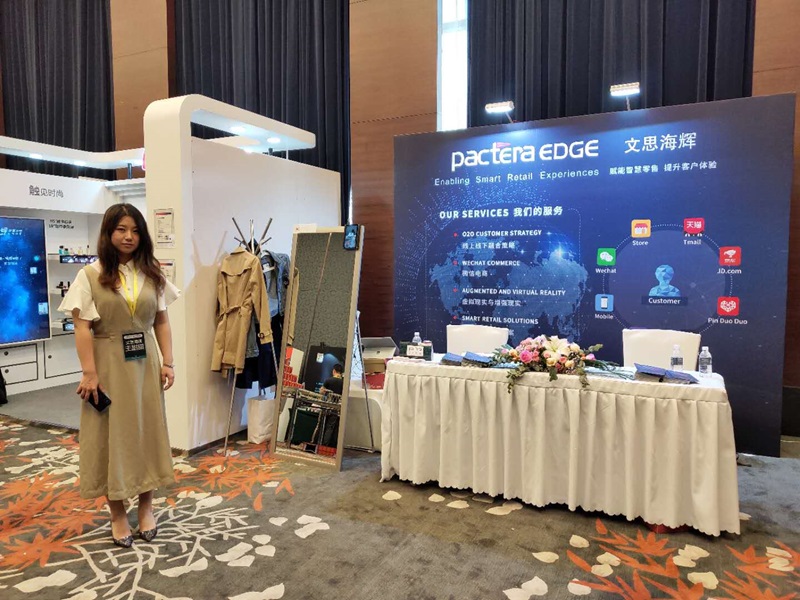 本次会议聚焦如何帮助零售商和品牌商通过数字化革命驱动销售收入、ROI增长以及消费者体验提升,开展了“未来商店”、“移动创新”、“‘小’数据”、“AI驱动商业”、“新零售业态”等多个热点议题,安排了有关智慧零售的多场演讲,可谓干货满满。在会场,文思海辉带来了新零售线上线下融合策略、新零售“微信电商”、“智慧零售解决方案”等,还特别展示了为新零售研发的 Smart Mirror智能试衣镜。现场人流涌动,文思海辉“智慧零售解决方案”展现出完备的系统、全面的能力、开放的连接,“ Smart Mirror智能试衣镜”更是引来不少观众驻足参观与咨询。