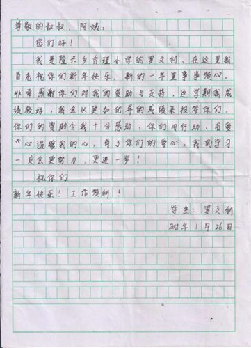 连续多年的公益助学路,文思海辉累计帮助贫困孩童近千人次,其中,大多数孩童获得了连续资助,直到他们学业结束。来自文思海辉的数百名员工先后参与了助学项目,截至2018年,资助的善款总额累计近百万元。为了表达对文思海辉志愿者的感谢,受助的孩子们回写了一封封诚挚的感谢信,让人动容。