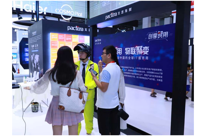 来到文思海辉展台,首先映入眼帘的是文思海辉工业物联网demo展示板块,文思海辉面向制造行业自主研发的工业物联网平台OctoIoT,及三大针对性解决方案:OctoIoT Infrastructure——智能物联网服务平台产品生态、OctoMES——生产信息化管理系统和OctoAPS——高级排程系统软件,提供以数据采集为核心的,包含数据互联、数据应用和数据分析的集成软、硬件的整体化解决方案,以信息化的手段实现技术、生产、管理等多环节的创新应用。目前已在多个电子、线缆等制造行业客户成功落地。其中,OctoIoT Infrastructure智能物联网服务平台产品生态能够帮助绕组线行业客户解决工业成本高、用工管理难、核心技术薄弱等困难;OctoAPS可帮助企业提升生产现场管理水平,保证在复杂的生产环境下做出正确决策;而以OctoMES为主的数字解决方案,能够实现智慧监控、异值报警,并提供智慧优化方案。在实际应用中,文思海辉为客户提升了企业核心工艺水平,平均缺陷减少了18%,运营效率提高了30%。