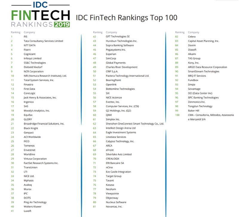 图示:2019 IDC Financial Insights FinTech Ranking Top 100